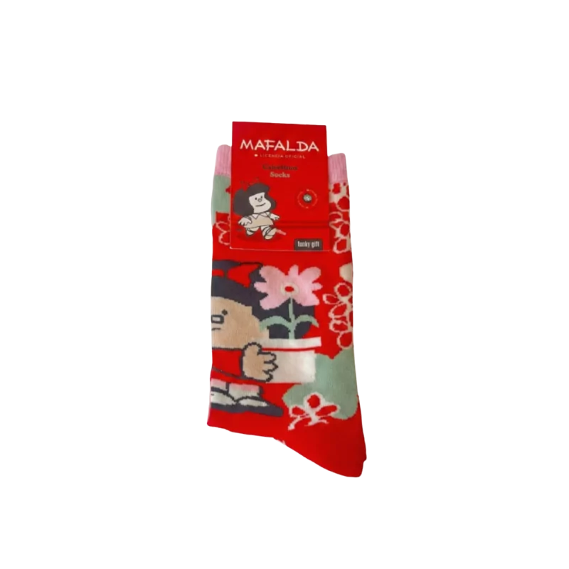 ¿Hay algo más tierno y a la vez más profundo que Mafalda cuidando su planta? Estos calcetines capturan ese momento de sensibilidad y esperanza. Con un diseño donde la naturaleza y el optimismo de nuestra pequeña filósofa son los protagonistas, son el accesorio perfecto para quienes creen que un mundo mejor es posible (y quieren caminar hacia él con comodidad).