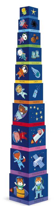 Un librito colorido y cautivador que enseñará a los más pequeños los conceptos clave del aprendizaje junto a los colores, las estrellas y los planetas. Diez cubos ilustrados para construir una torre y hacer más divertido e interactivo el aprendizaje