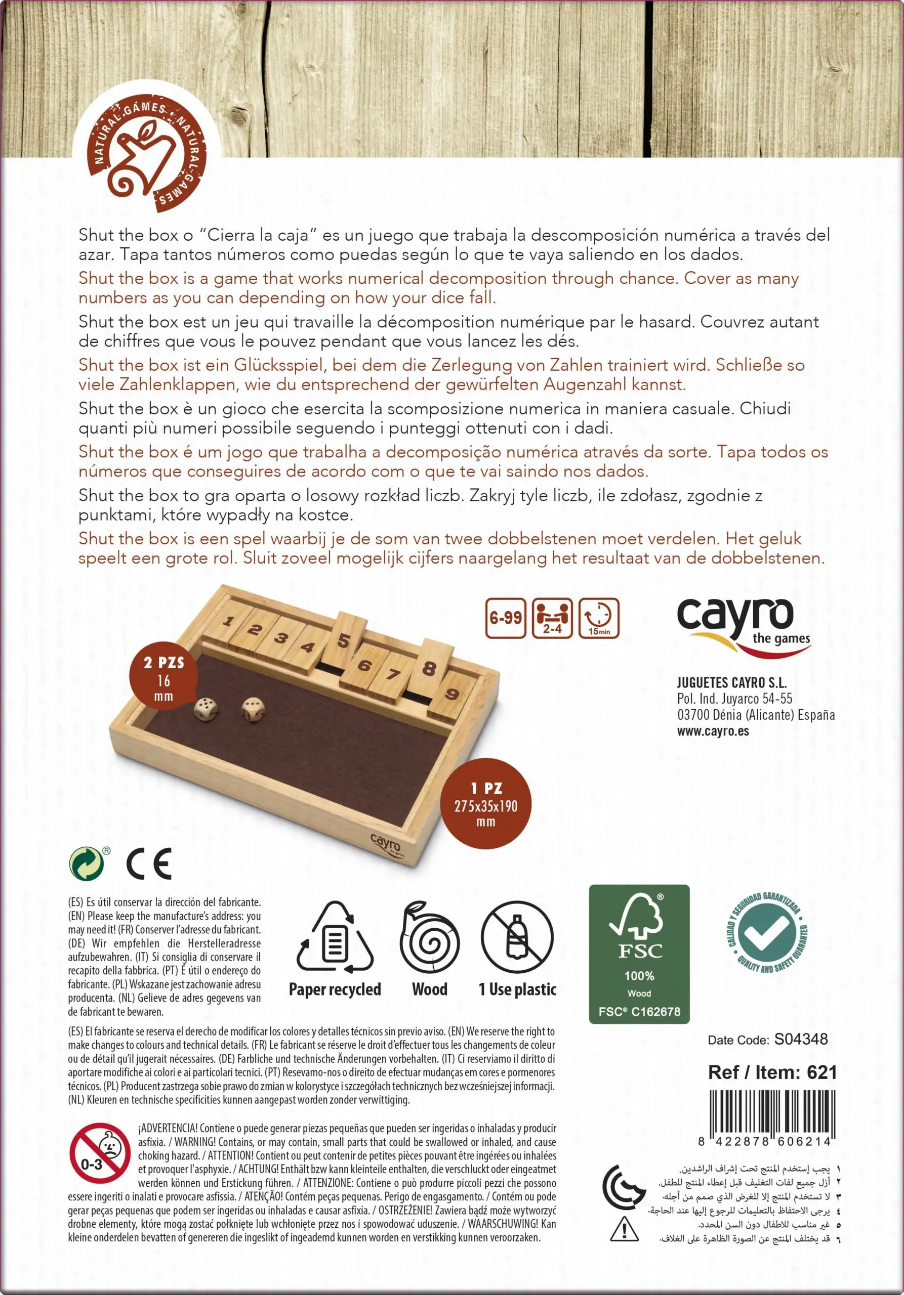 Shut the box o “Cierra la caja” es un juego que trabaja la descomposición numérica a través del azar. Tapa tantos números como puedas según lo que te vaya saliendo en los dados.